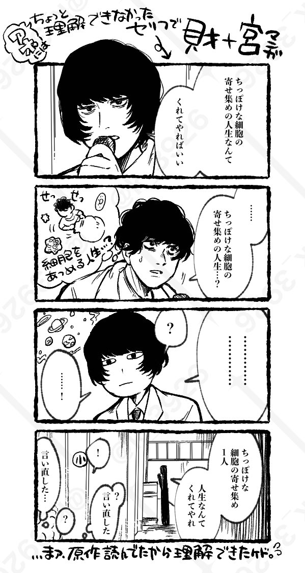 啊啊啊啊啊啊啊啊啊啊啊啊啊😭😭😭😭😭😭😭😭原作?!?!?!魚豊老師??!!?!小宮能獨自一人撐下去真的是靠跟トガシ之間的回憶啊😭😭😭😭😭😭😭😭套用其他太太說的話,世間還沒有能夠形容他倆關係的詞,就算他們沒有結婚也會一輩子在一起......