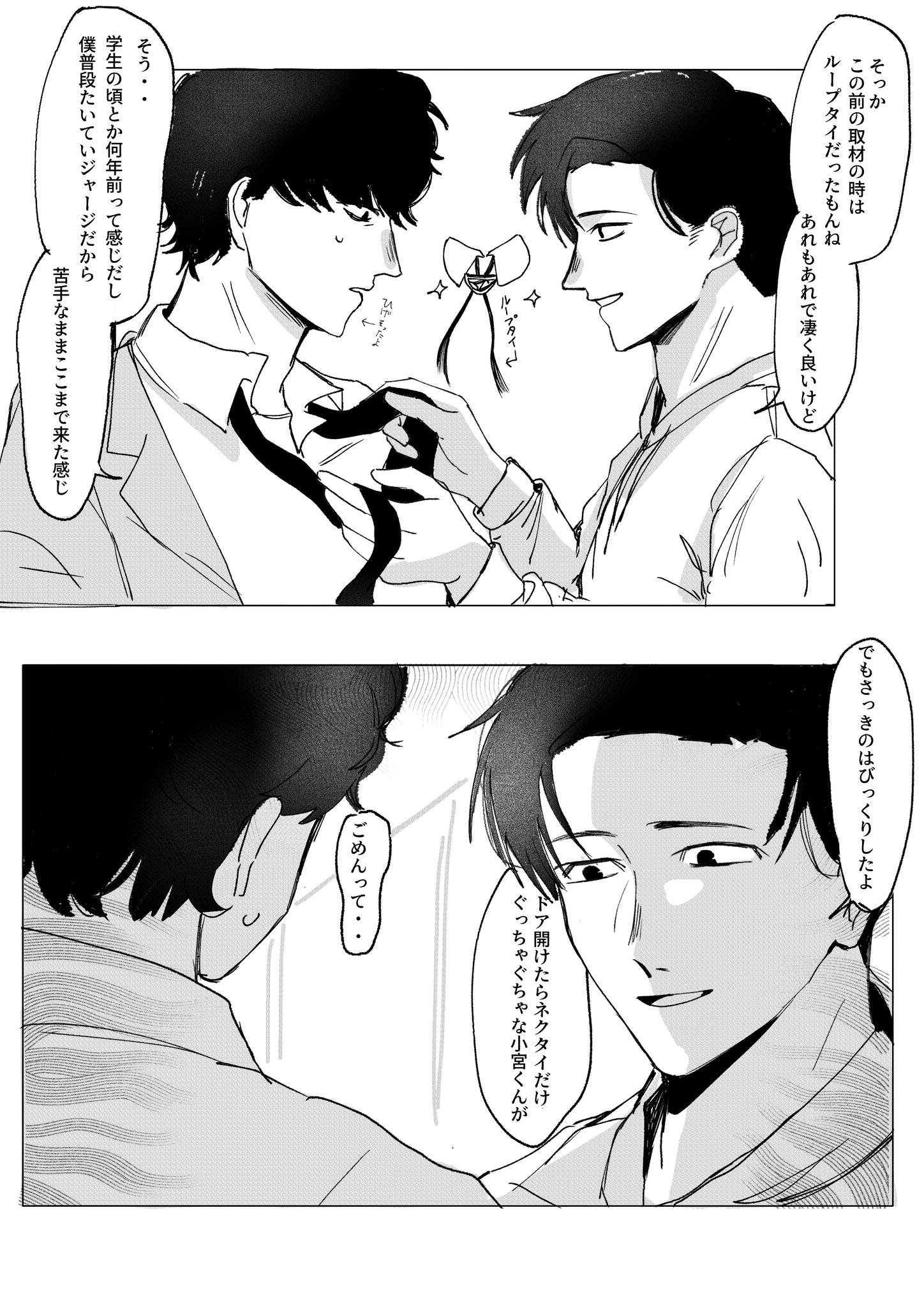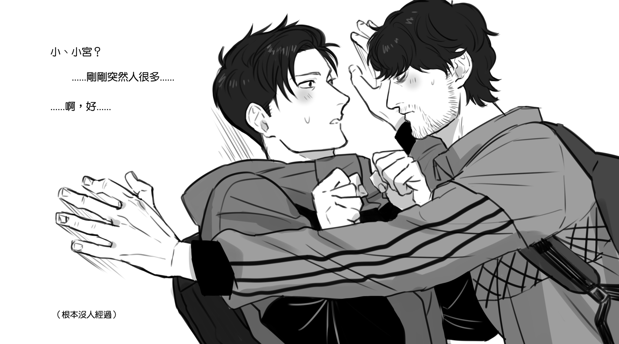 吵架→氣氛凝重,小宮打算離開現場冷靜→回頭發現トガシ眼眶超紅→對他的哭臉沒有抵抗力衝上去抱住他→兩個人互相道歉和好→打砲(?)