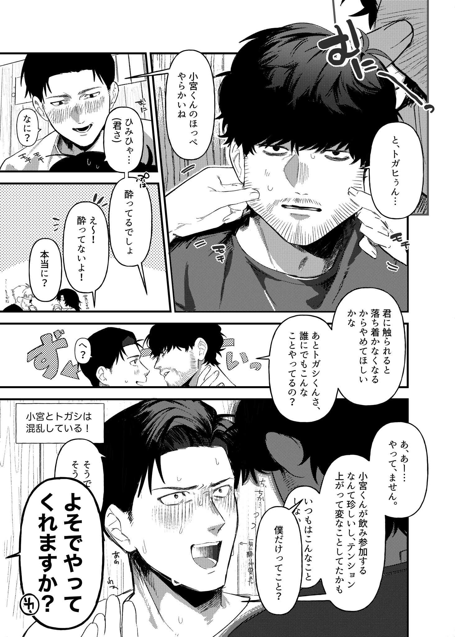 自覚する話完全沒有戀愛經驗也不太懂情慾之類的事的小宮太好笑了,トガシ簡直要被逼瘋,一邊感受著衝擊跟羞恥感還要幫對方釐清到底是抱有哪種情感。