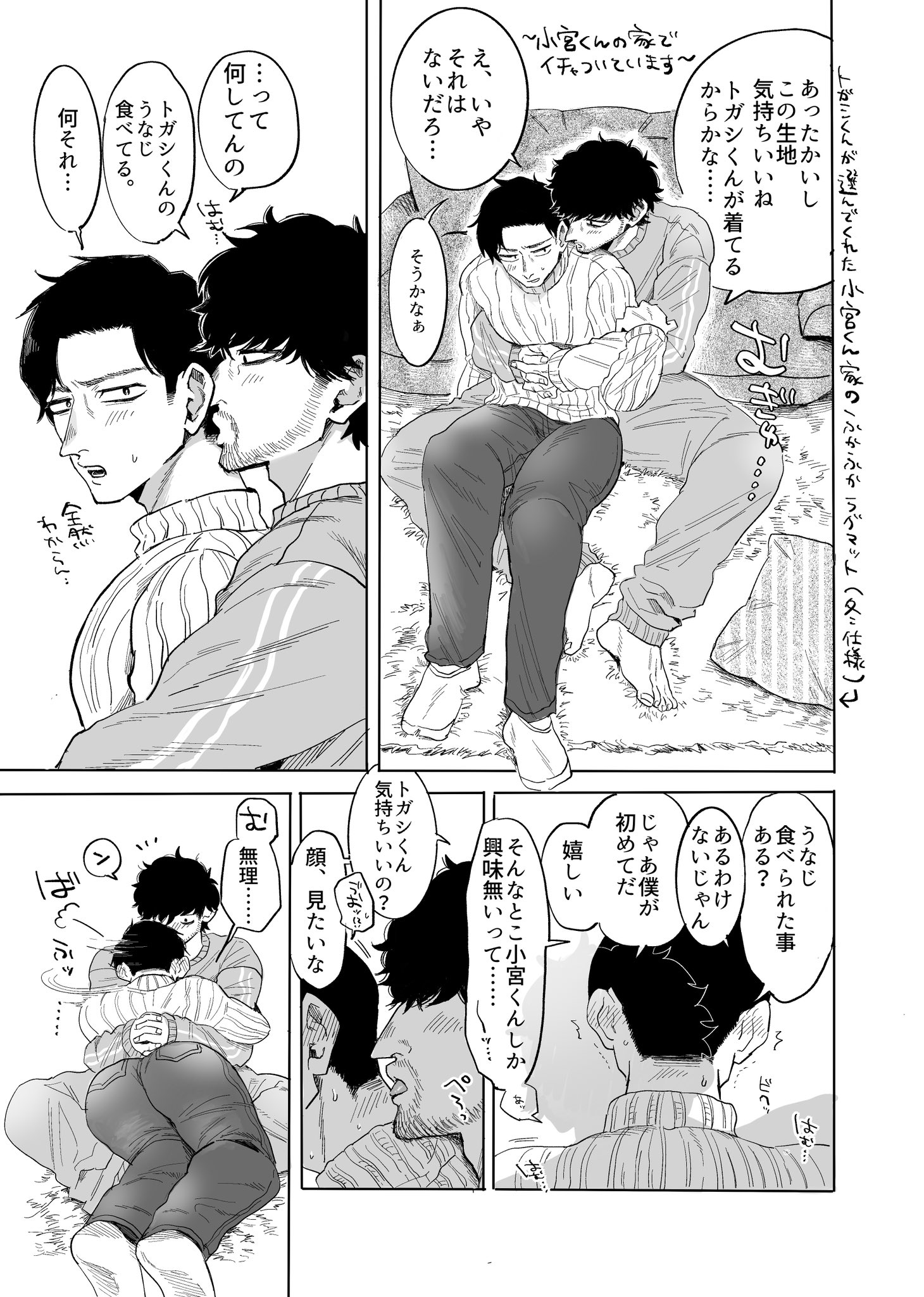 狡猾的部分我也超喜歡......不准人家聞味道自己卻用「例外」來說服小宮不沖澡直接打砲也太狡猾了吧🥹但因為是小宮愛慘了,最後還是順了トガシ的意。
