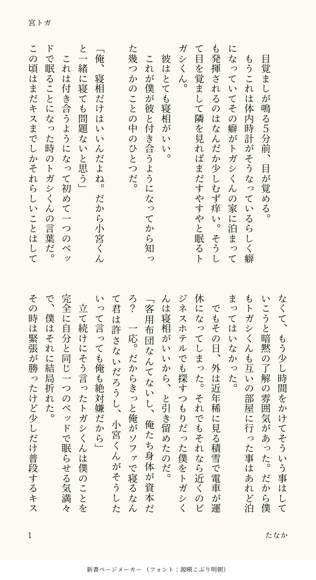 好喜歡跟トガシ在一起之後情緒上變得更多元的小宮,對於トガシ過分良好的睡姿感到寂寞也太太太太太可愛了吧🥺但能夠理解,睡前都把人抱那麼緊了,怎麼早上一醒來還是變回仰躺的標準睡姿,感到寂寞也是有道理的!!而在被トガシ摸摸頭之後就被哄好情緒,甚至覺得他能維持如此優良的睡姿實在很了不起的小宮也是可愛到爆炸,怎麼會有這麼單純的寶寶啦