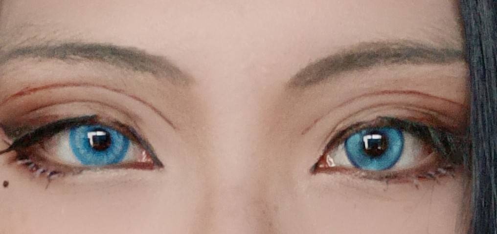 漫感藍,不愧是二次元感的神,色帶夠寬夠厚,但是瞳孔可以像冰藍夢境做點漸變就好了,很不喜歡這種跟虹膜過於分明的瞳孔QQ