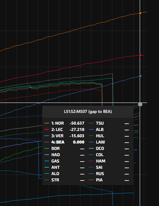 Holiness (@F1BigData) on X但我樂的車真的超慢啊是怎麼維持P2的(可能因為很多人二停)偉大⋯不曉得什麼時候換PU看大家都覺得撐不完剩下四場比賽⋯怕