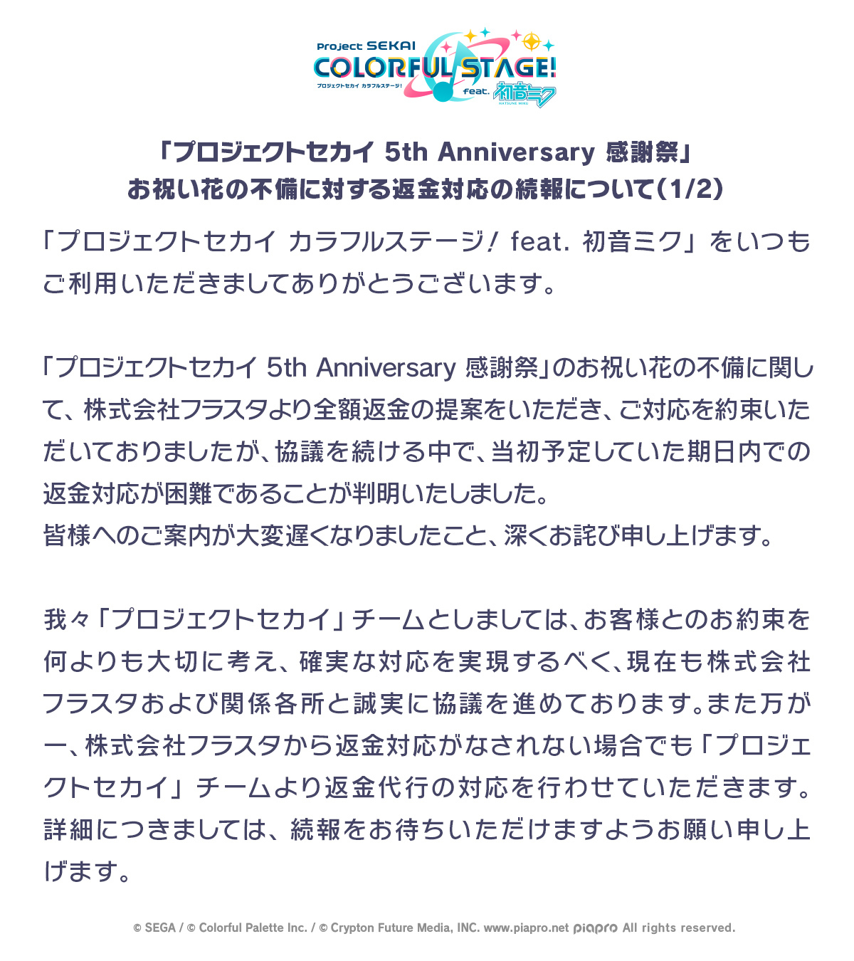 馬娘6th的花籃事件,本來公告說花店要全賠,結果後來傳出花店一次要賠馬娘+プロセカ的花籃賠到破產倒閉,現在CY只能出來自己吞了XDD