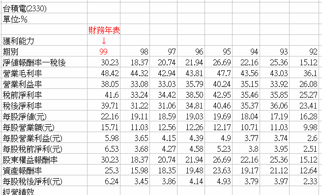連結裡的台積電,99年股價有存在不是嗎~
