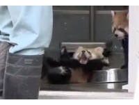 飼育員腳步聲突然出現 紅熊貓嚇得四腳朝天