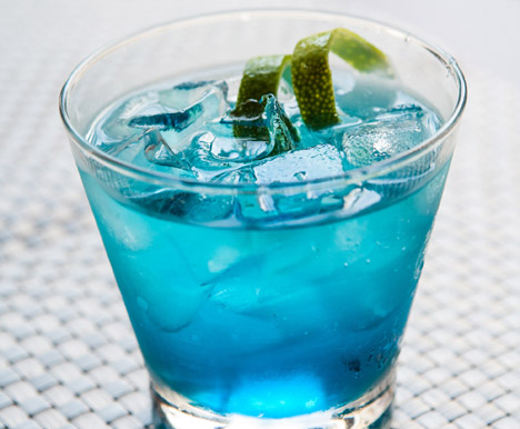 : 「謝謝妳呢!」拿了一杯無酒精的藍色珊瑚給對方。