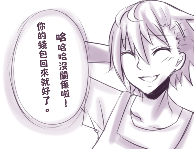 我也有份吶... 」面對Lazo突然露出溫暖的笑容,心裡感到安心。