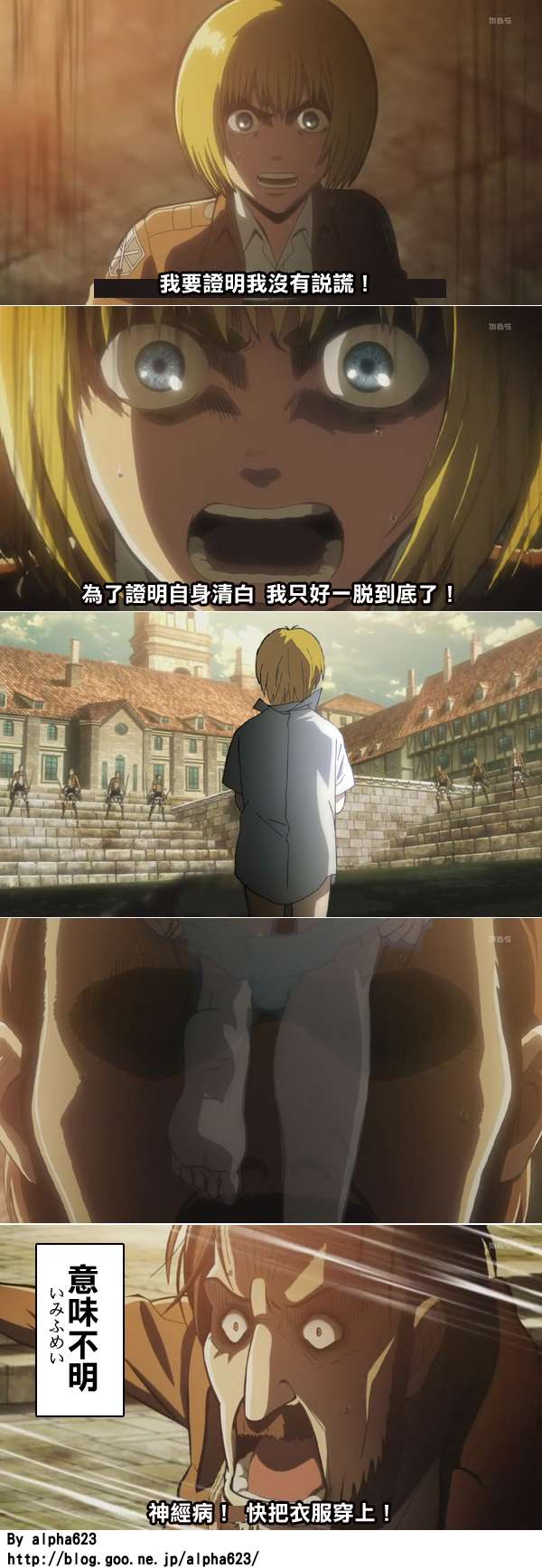 其實有幾個是革命機的梗wwwwwwww 阿爾敏脫衣服證明清白也是