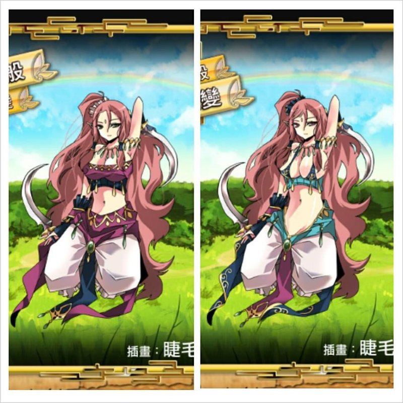 眼睛變成粉紅色,而且上面衣料變得更少(事業線好深)