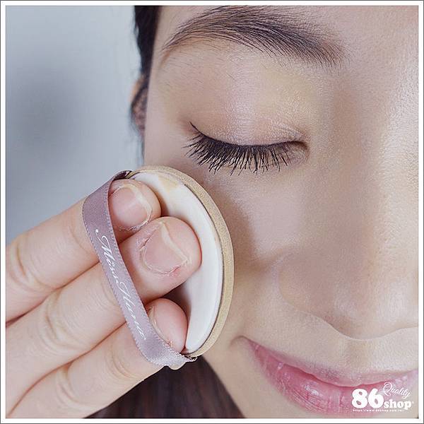也可說是用點的方式上妝 氣墊粉餅的好處在於可以不停地疊加 又不會有結塊掉粉的問題