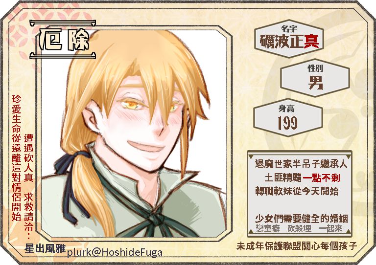 一堆劇情都沒有補的礪波帳,這次也是坦蕩蕩的來郊遊!(喂)