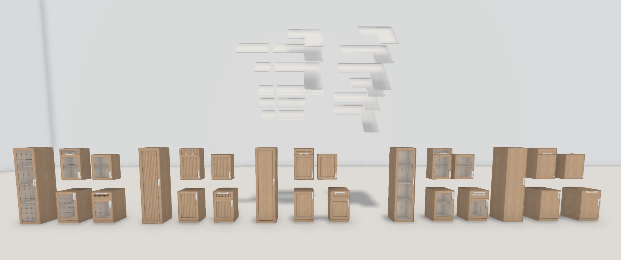 5 door types. 20 texture options, 3 handle options each with 5 texture options. Animated sink, fridge, microwave,..... blah blah blah. It's huge