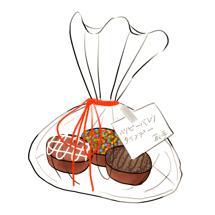 置物櫃被放了小狗和蝴蝶結形狀的牛奶巧克力,附在包裝上的信紙寫著:「情人節快樂☺~!!! 晴奈」