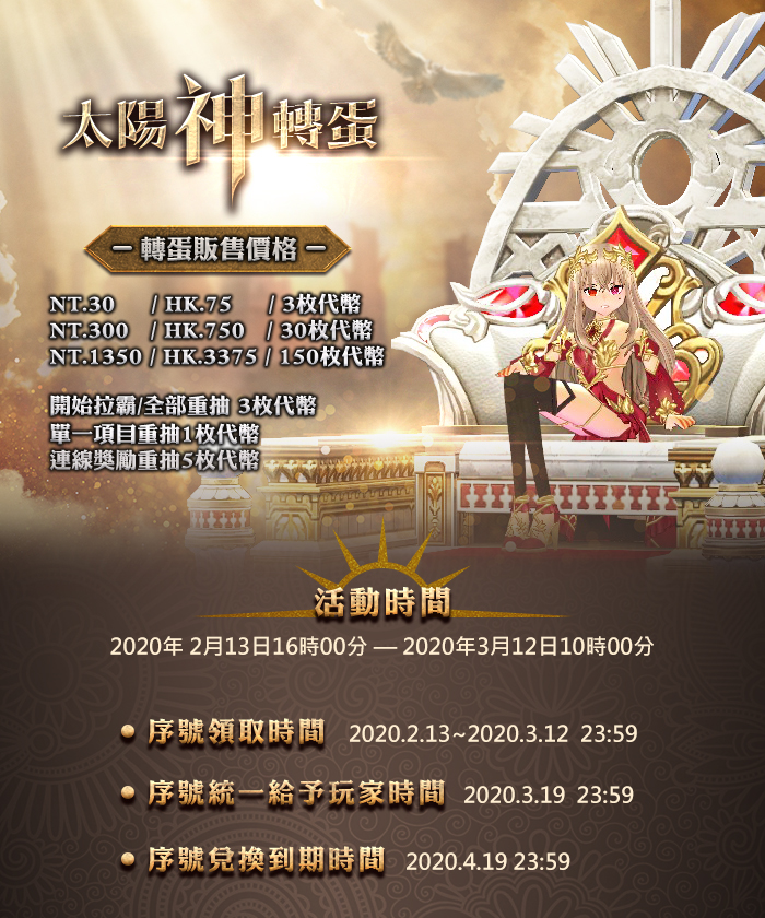 首先讓我們看看太陽神轉蛋的公告!