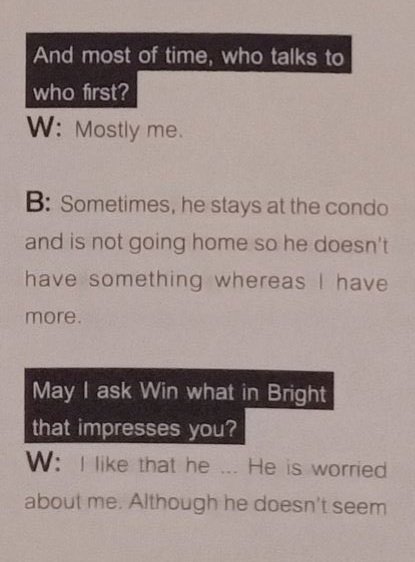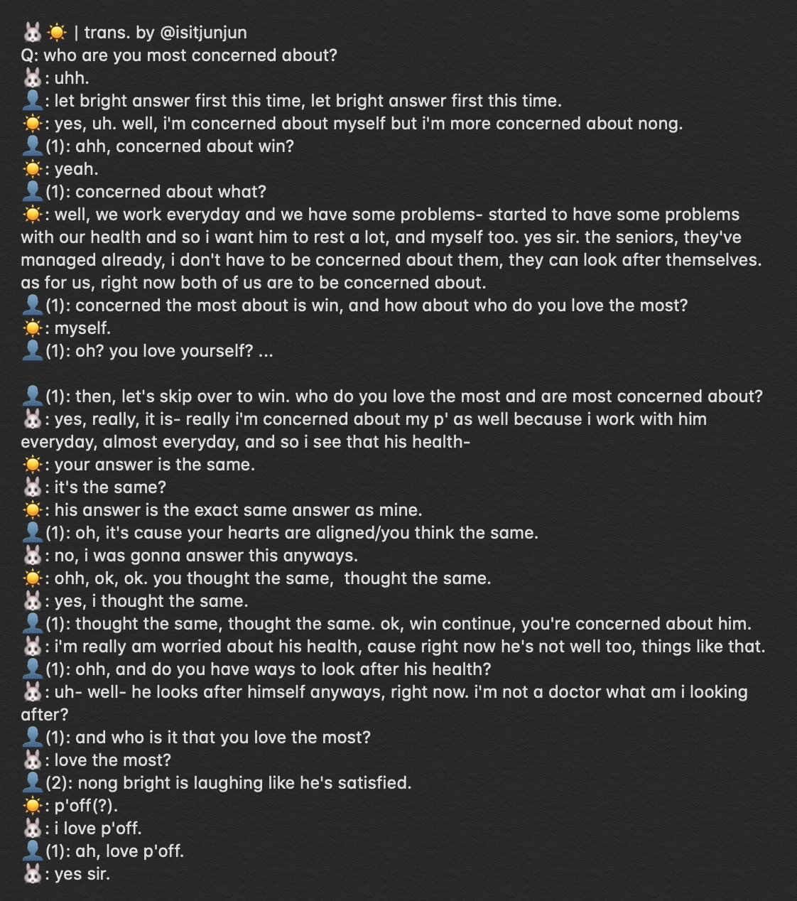 🐰嗯,真的,我真的也最關心P’Bright,因為我幾乎每天跟他一起工作,所以我會注意到他的健康⋯