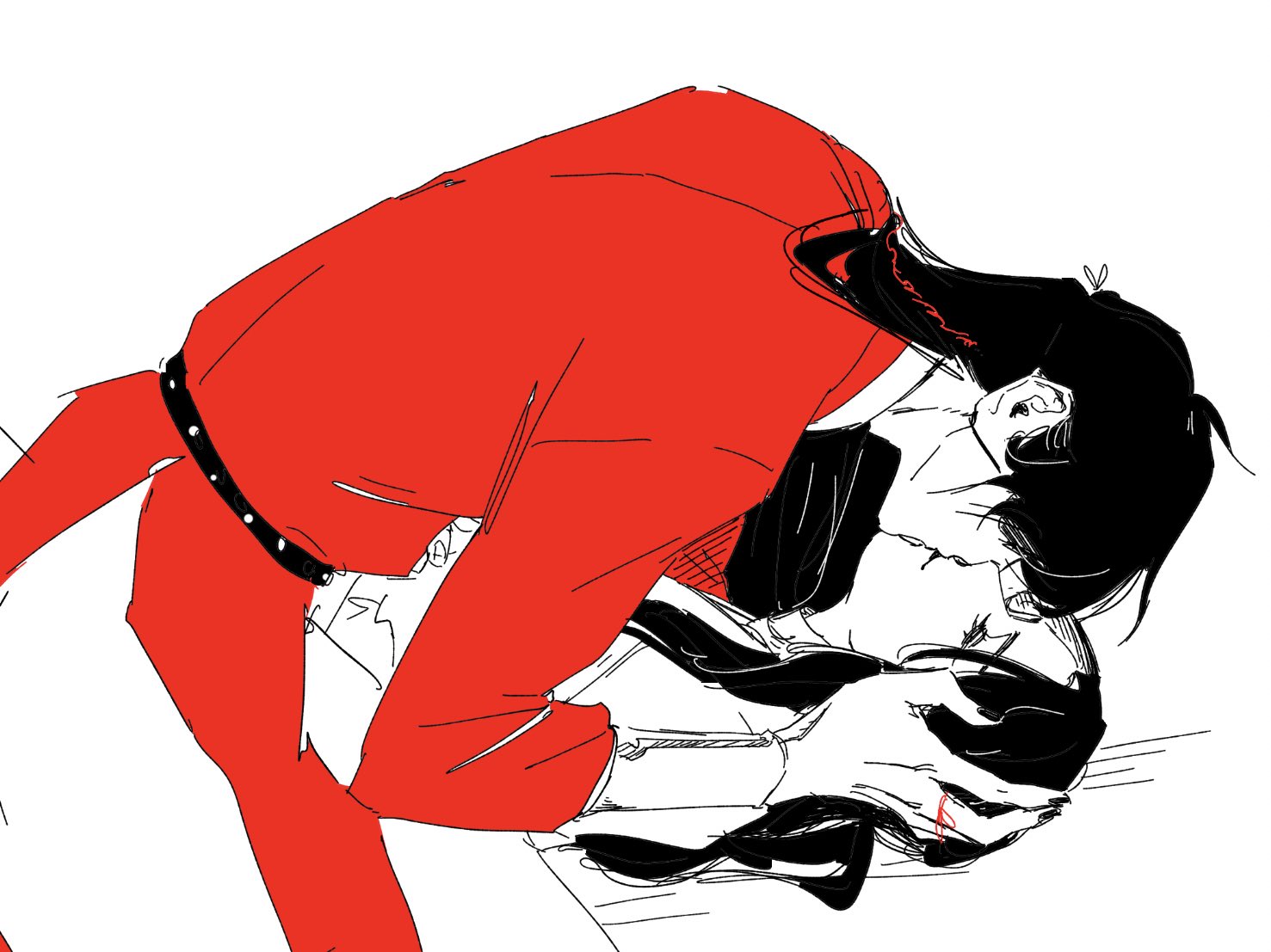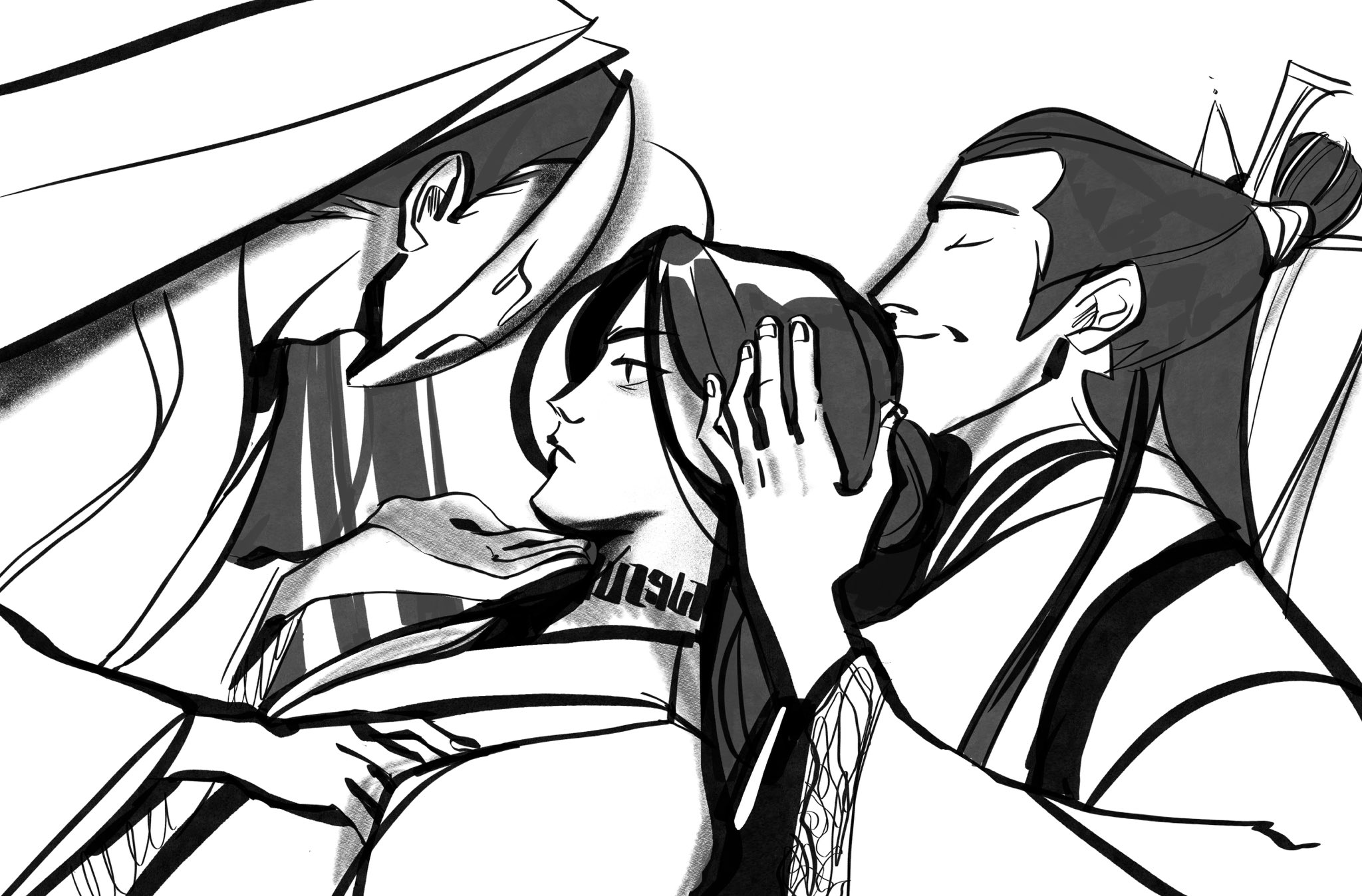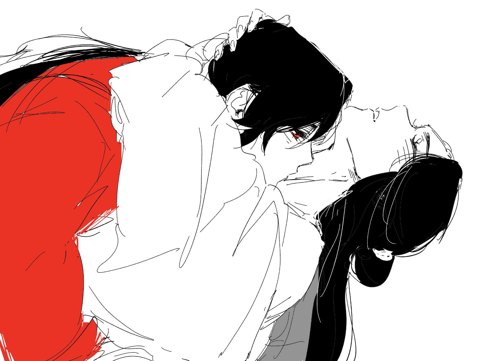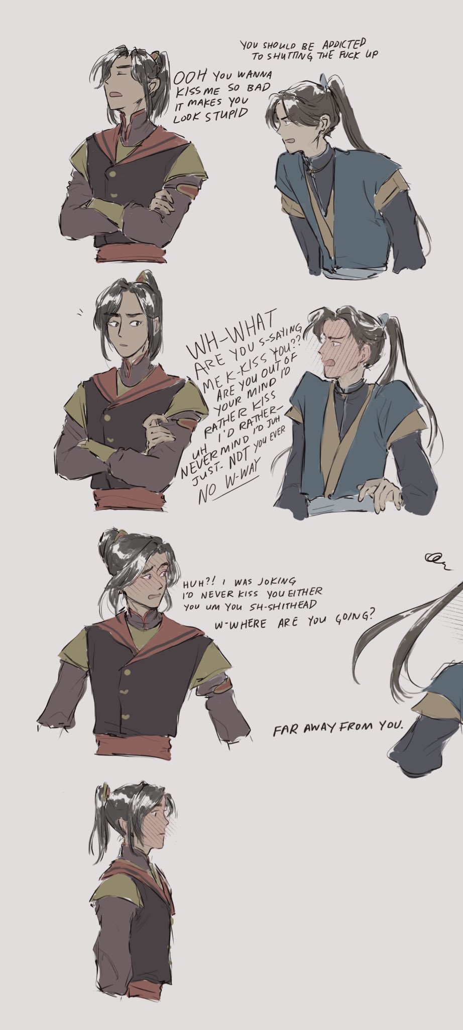 me da risa que en el manhua de hecho le cierra la camisa el fumuso y en la SIGUIENTE VIÑETA el otro se está desabrochando el botón otra vez