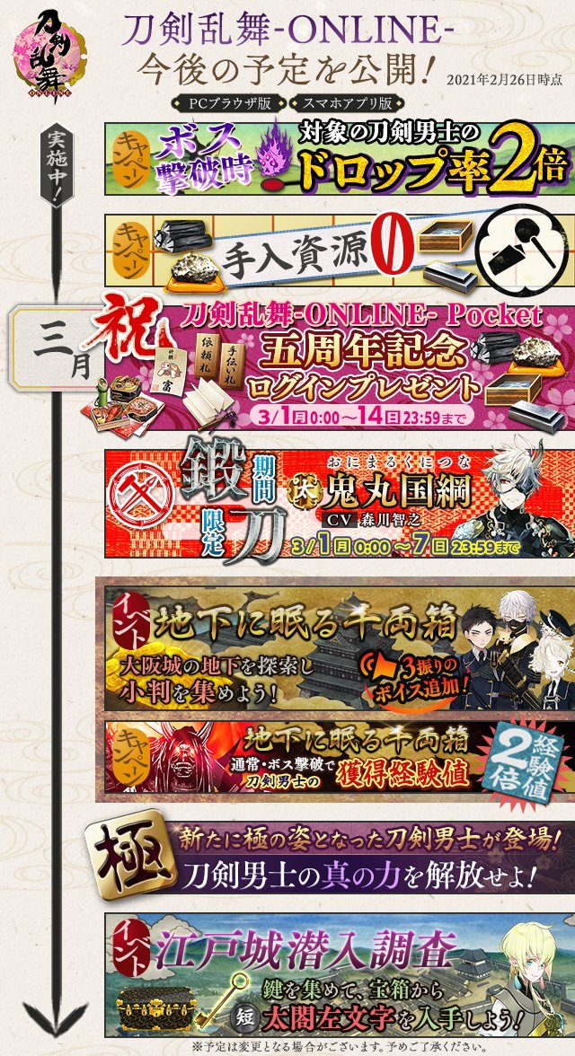 2/20,因為活動獎勵都完成了,所以抓一隊85級組(地藏古今治金丸、太閤五月雨大千鳥)去加減刷真劍,不過不是跑得比敵方快就是刀裝被遠戰砸光後白刃戰直接被戰崩……強度調整好難拿捏啊(遠目)。