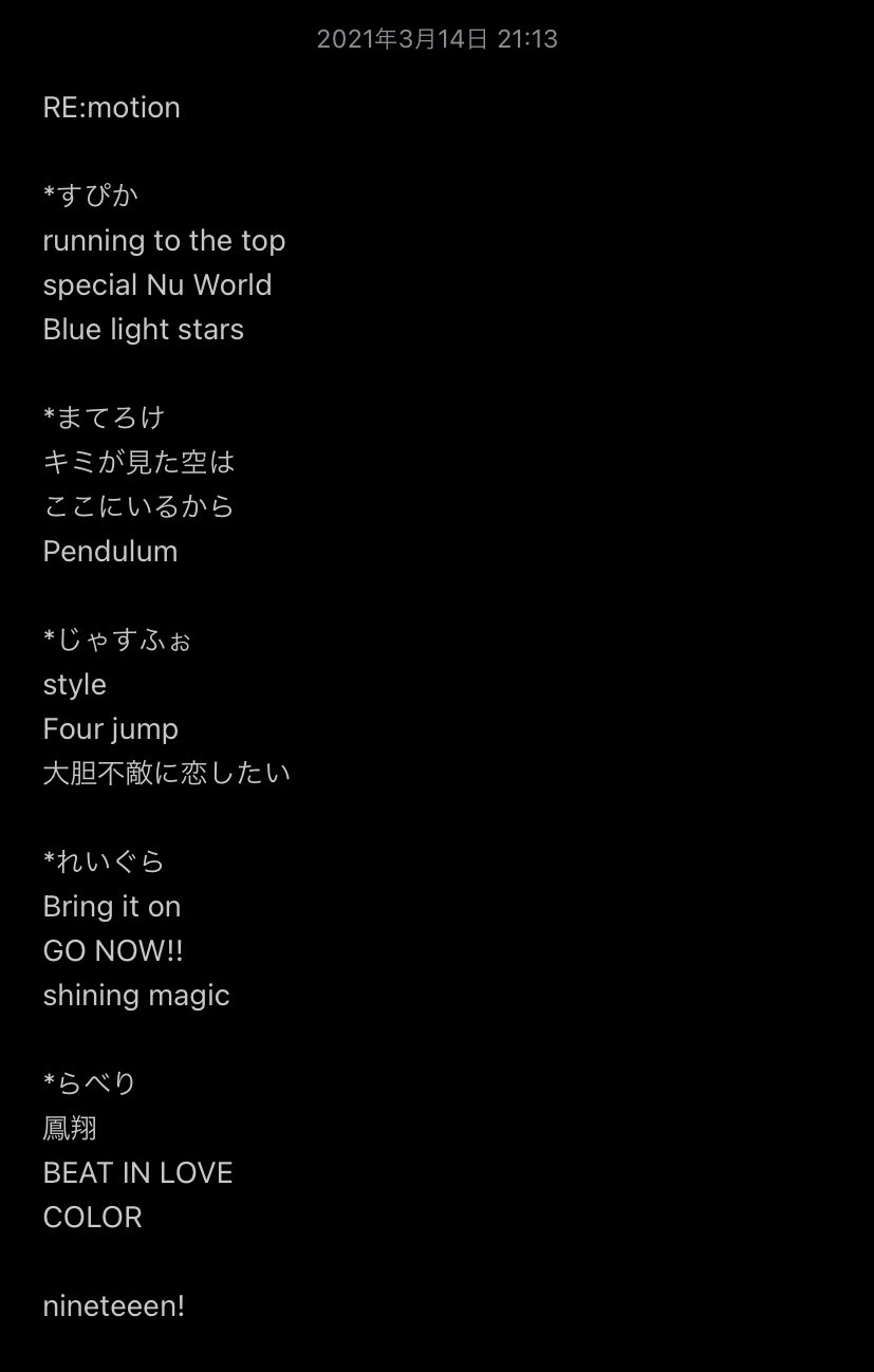還沒聽,但聽說リエモ的舞蹈會隨著舞台大小改變,換到大阪(更寬敞的舞台)會有不同隊形(