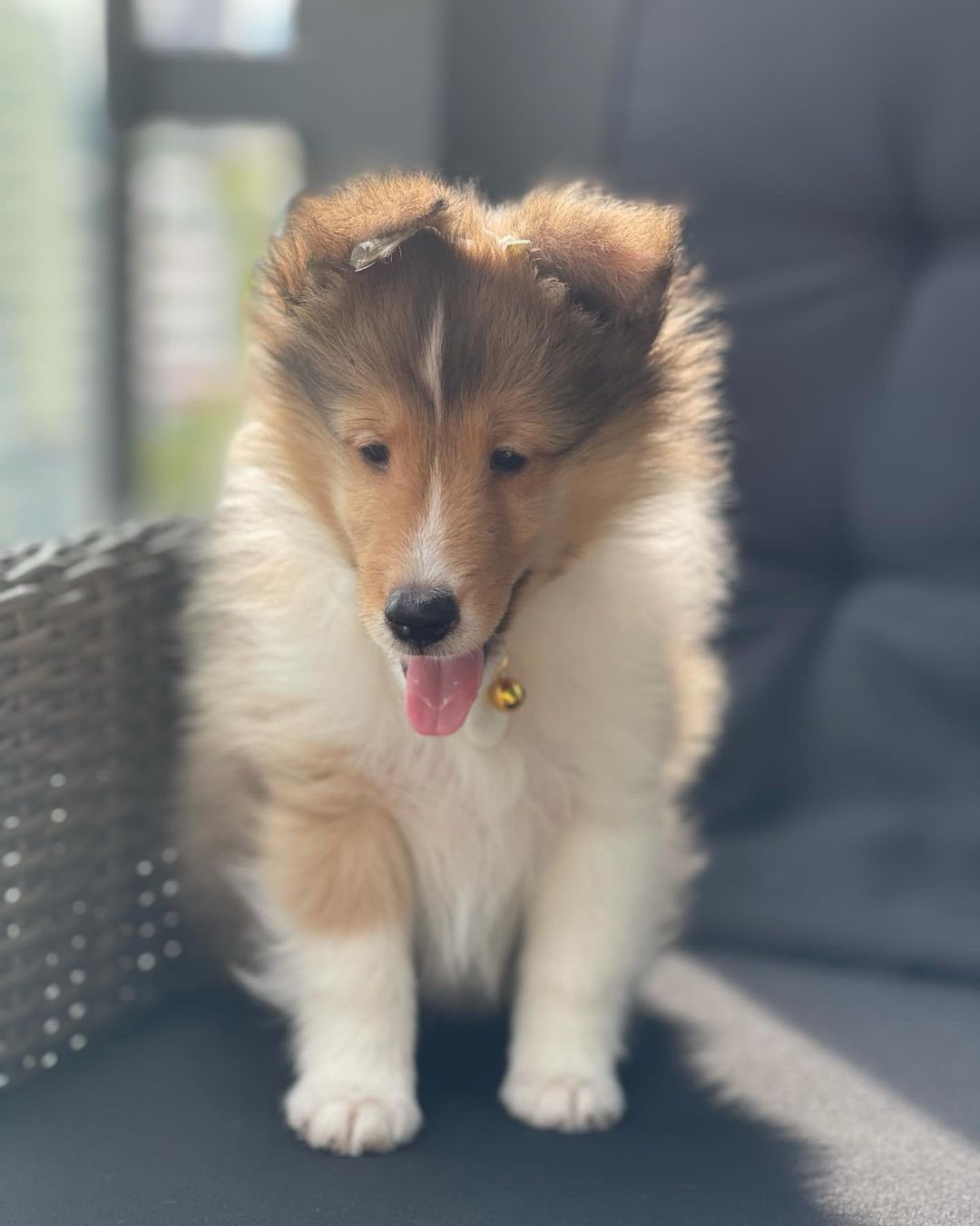 C妹頭上那一塊白色特別大,拿這個來認狗XD