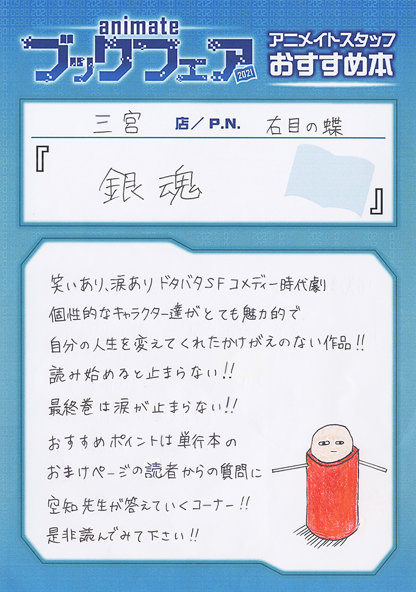每次都想如果只能被迫選一套漫畫陪葬,我可能真的就是會選銀魂(但海賊火影對我的影響也真的超級大......撕裂...無法選擇),可以的話希望我喜歡過的作品全部跟我一起入土,算算都是逼近百卷的長篇作品(