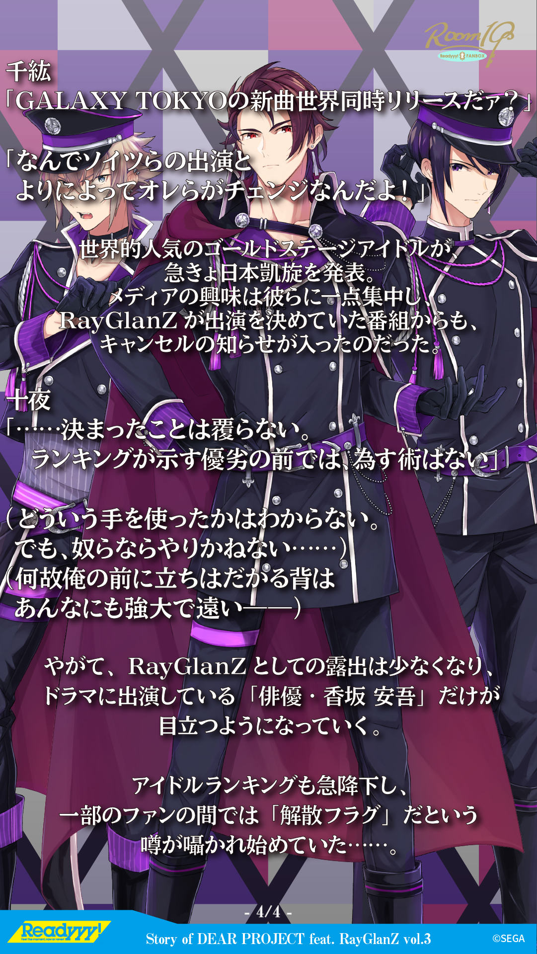RayGlanZ的偶像排名也急轉直下,一部分的歌迷開始竊竊私語,說這是「團體解散的前兆」⋯⋯