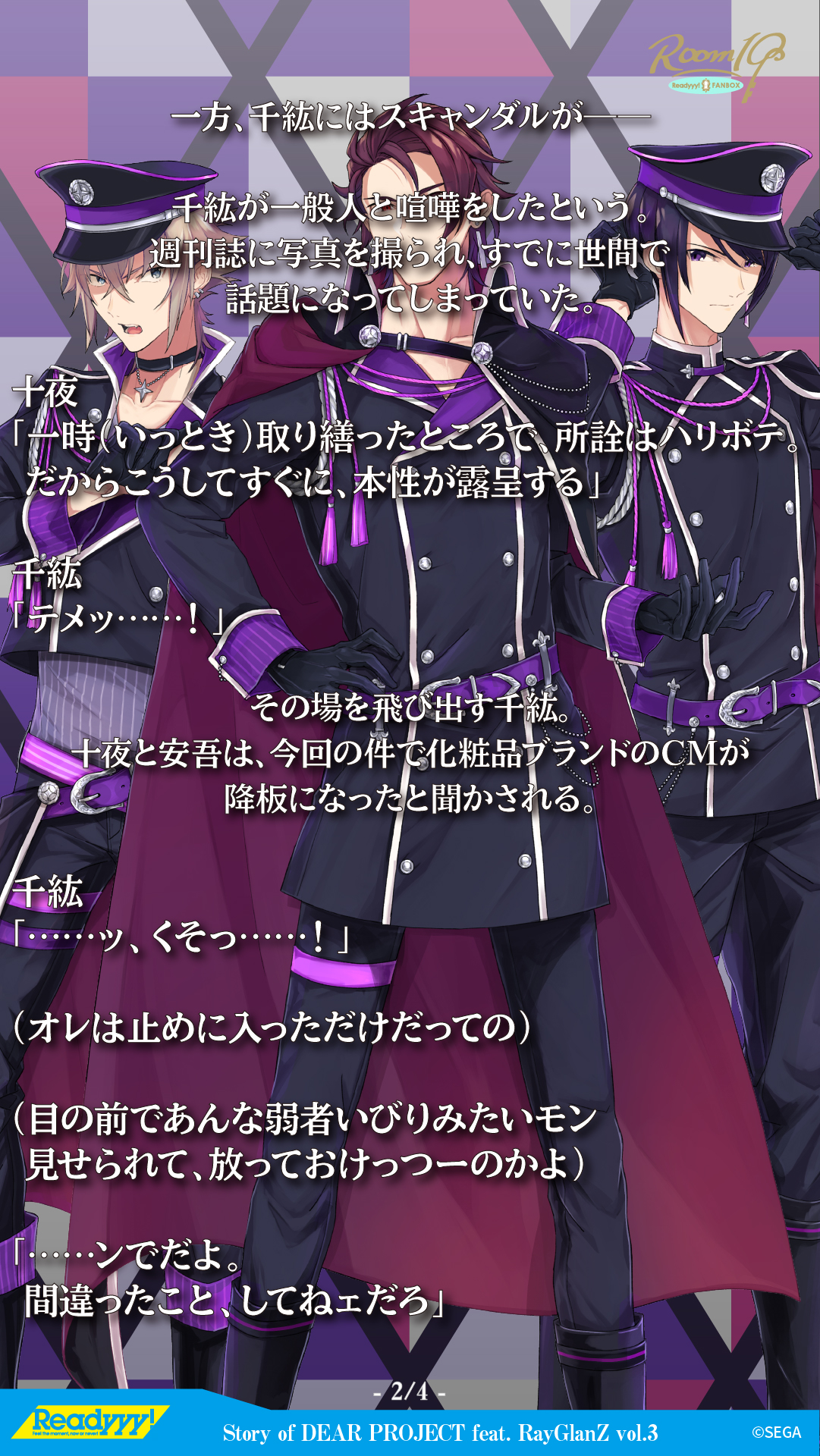 千紘氣到當場離開,而十夜和安吾則聽說,由於這一次的醜聞事件,RayGlanZ原本接下的化妝品廣告代言將要換人。