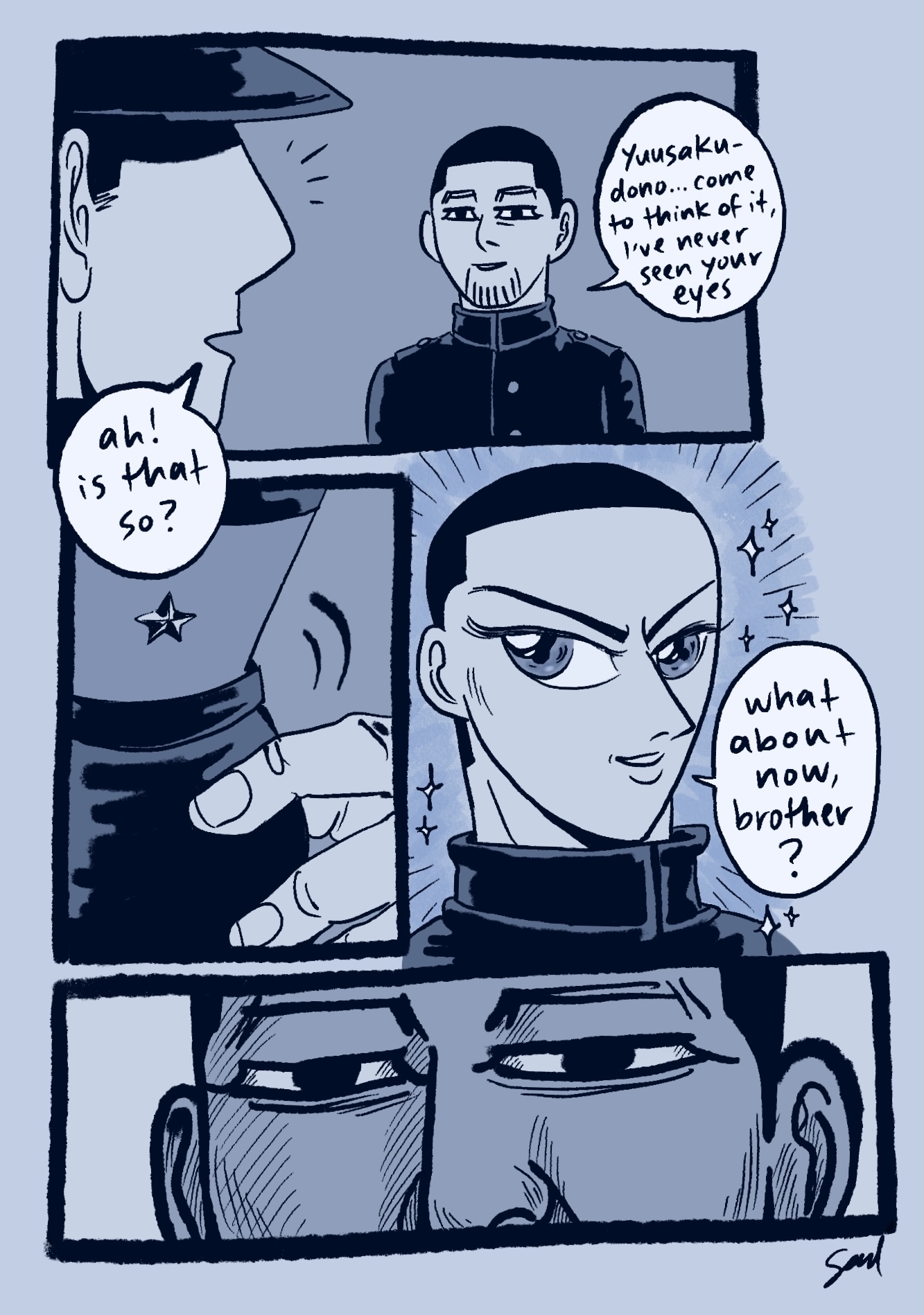 說不定就是鯉登對月島說就信任我跟著我來那一段+鶴見對月島說你是我的戰友那幾段去看他們的不同以及他們對於月島的定位