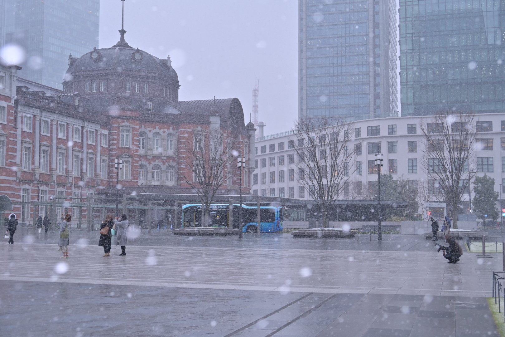 媽啊雪中的東京車站好讚😭