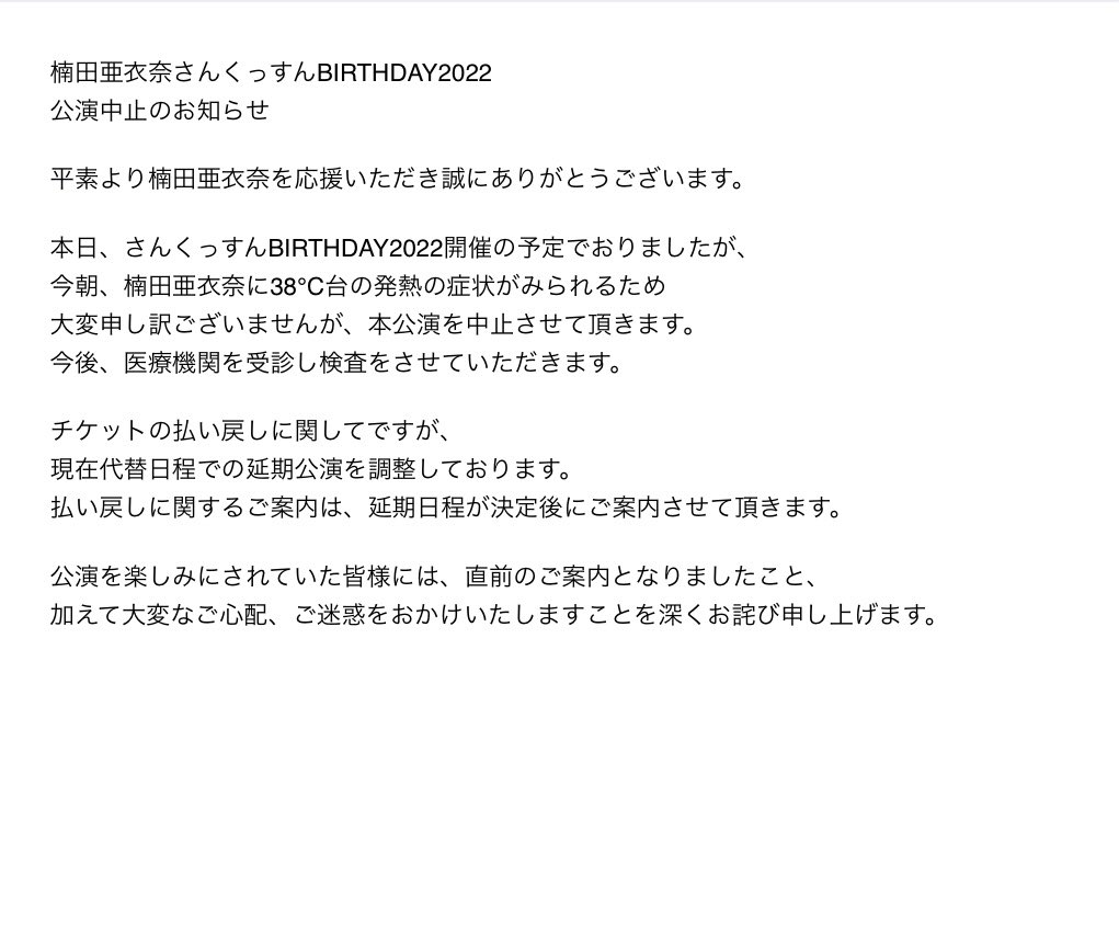 さんくっすんBIRTHDAYを楽しみにされていた皆様、申し訳ございません。