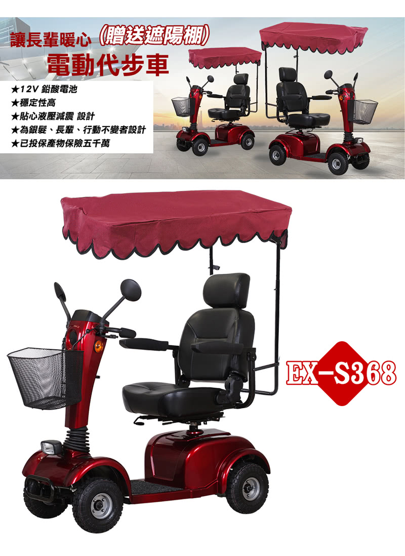 電動代步車被改色成了黃色和粉紅色混搭的樣式,遮陽棚的部分印有水桃情趣的聯絡電話和粉專。
