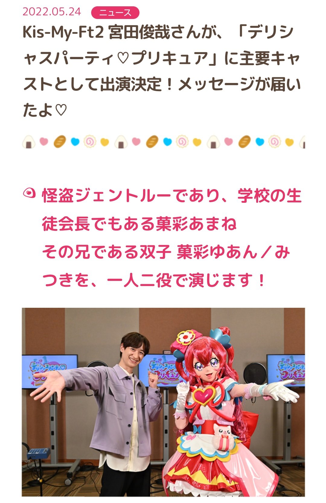 Kis-My-Ft2の宮田俊哉さんが「デリシャスパーティ♡プリキュア」に出演決定!