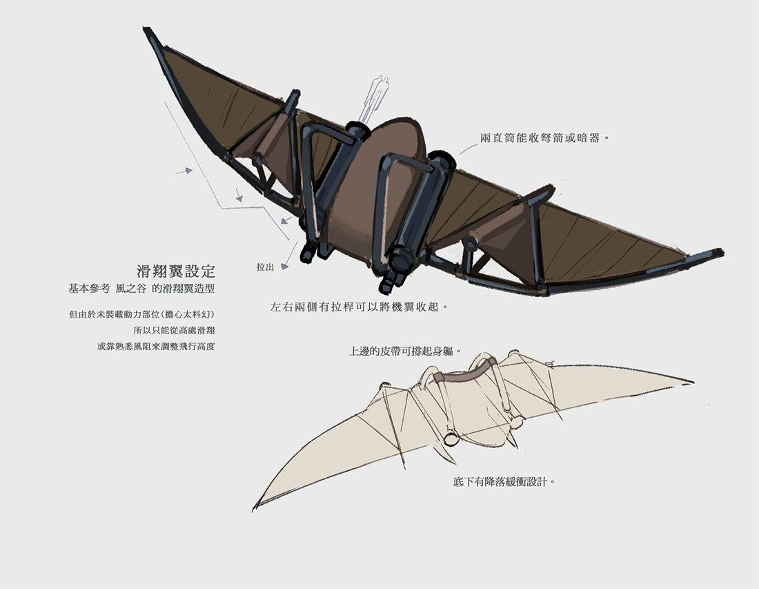滑翔翼:仿鳥骨結構去改造調整,質地輕巧且飛行感平穩。常需要保養。