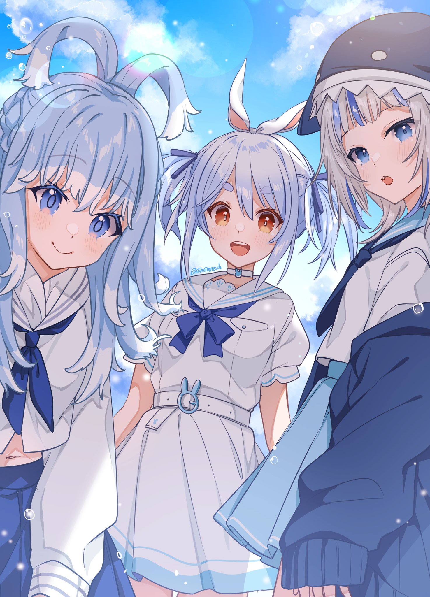 之前畫過pekora了,但是gura和kobo應該是第一次畫,穿水手服一定很可愛.........