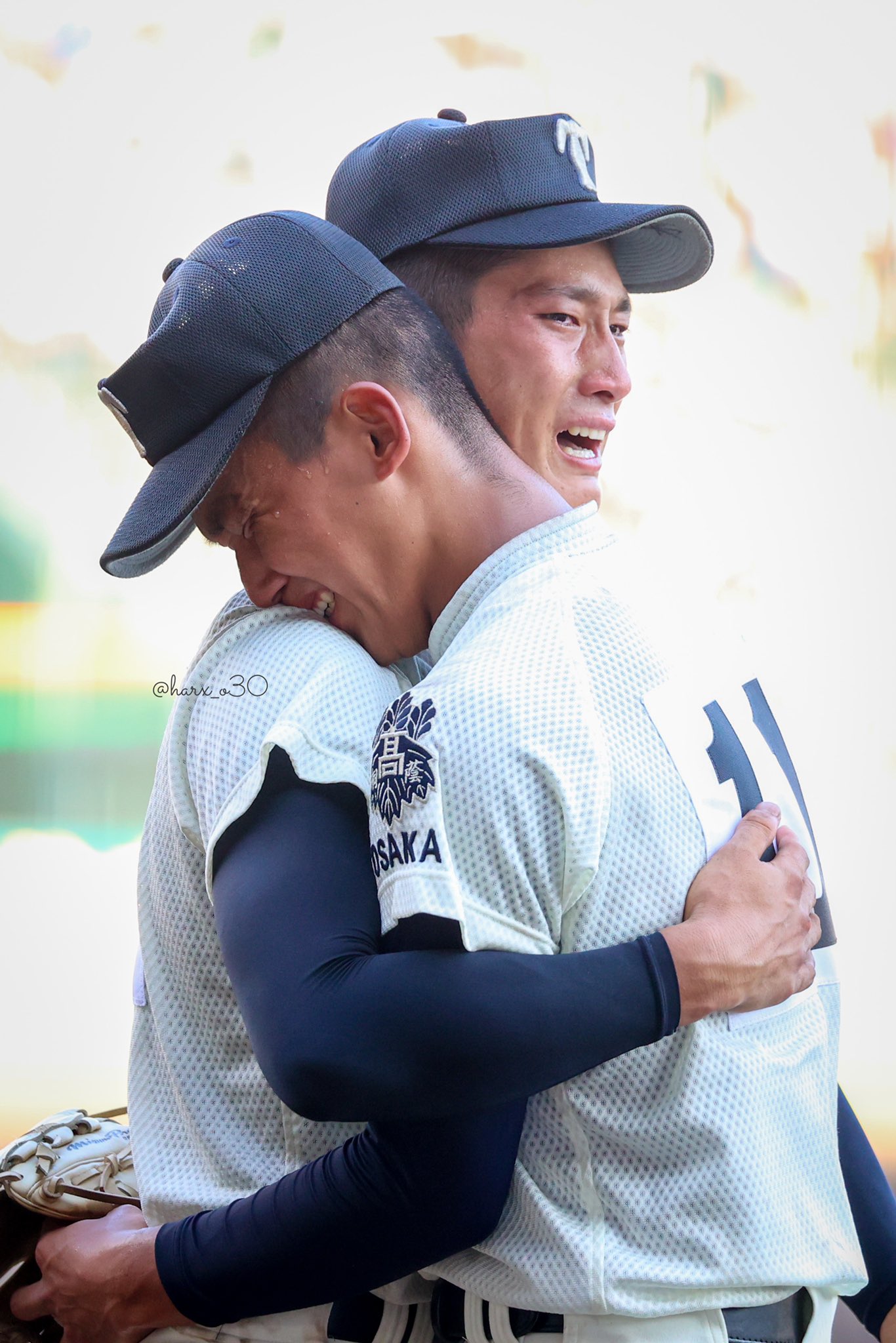 a on Twitter星子隊長一直忍著,還一直跟大家說「最後までしっかりやろう!」,松尾同學跟川原同學都哭紅了鼻子,川原同學還是笑著抱住哭不停的悠伍,按到懷裡拍拍肩膀拍拍頭,吉澤副主將也過來抱抱學弟摸摸頭,大好きな松尾學長也在後面拍拍他,這孩子就一直哭...