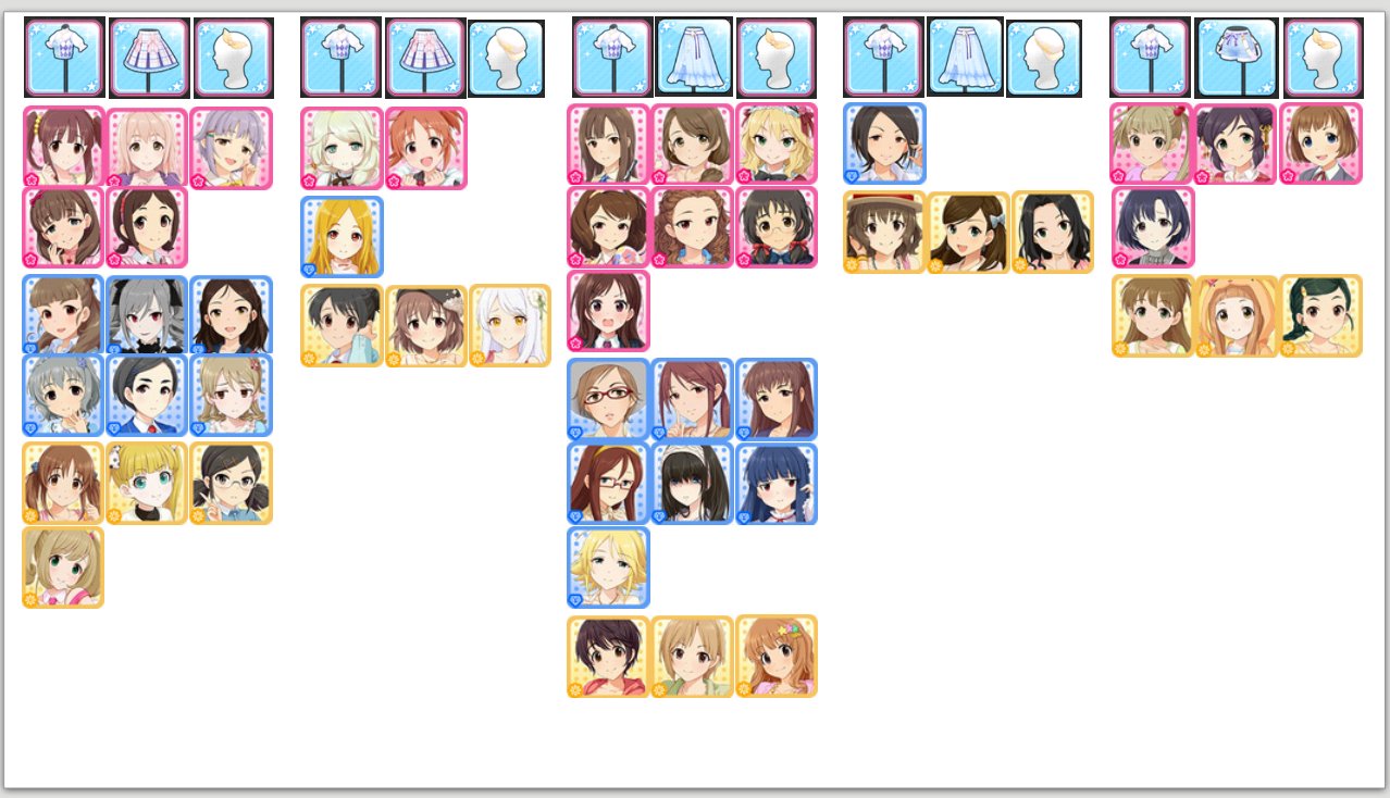 另外四人的隨機,衣裝不知道是也隨機還是會根據偶像配的?每次看同個位置不一樣的偶像好像都不同