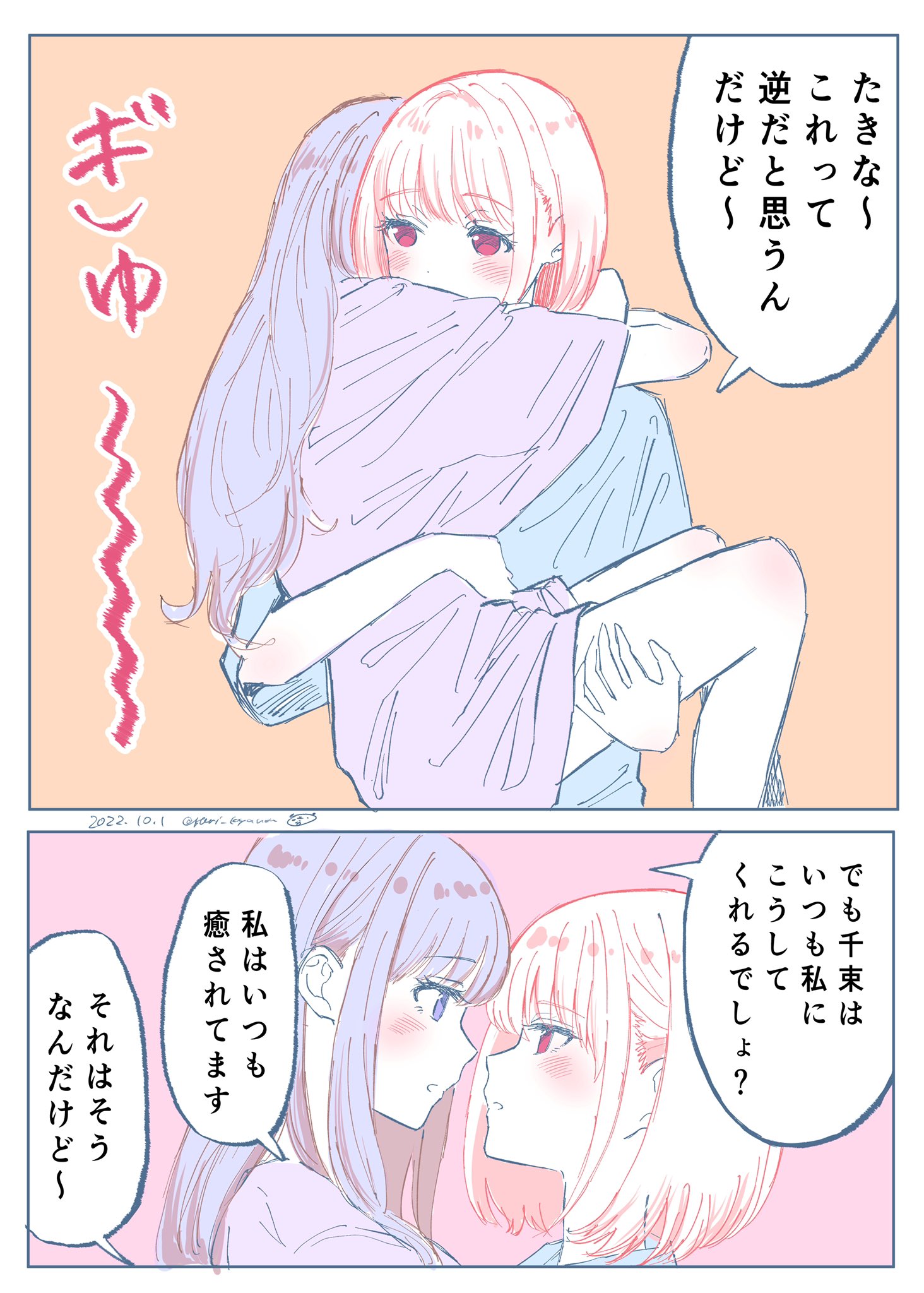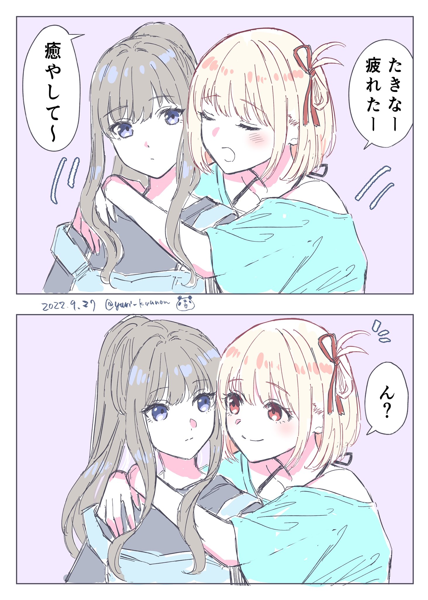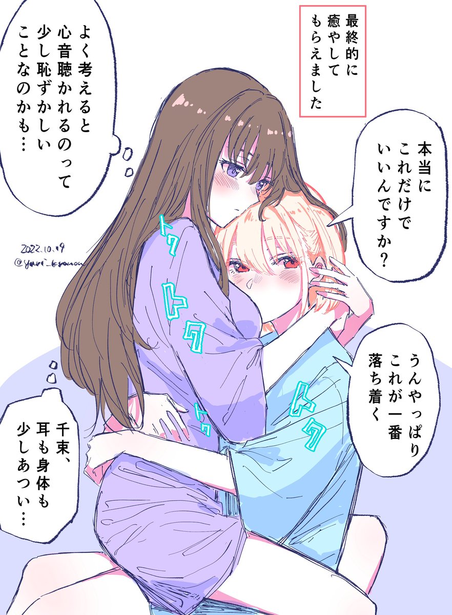 千束聽瀧奈心跳......瀧奈坐千束腿上......瀧奈的大腿......好棒喔構圖到畫風都好喜歡我要死掉了謝謝繪師大大。