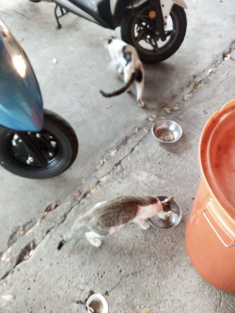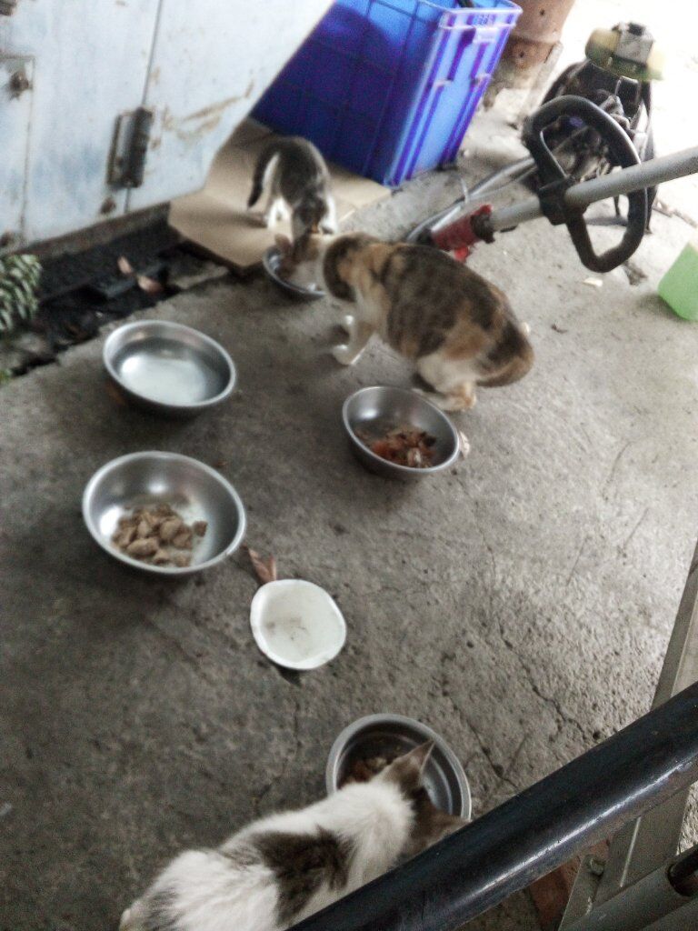 回到苗栗了 餵貓中 吃罐頭!
