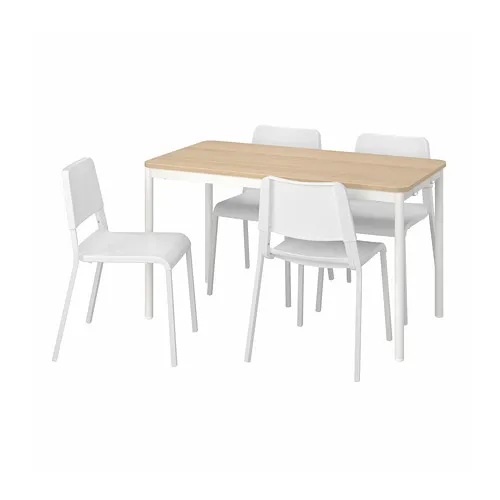 oO(純白色這組簡單俐落,又剛好可以跟家裡白色的廚房相互搭配。)將餐桌椅的編號寫在便籤上。(餐桌椅在