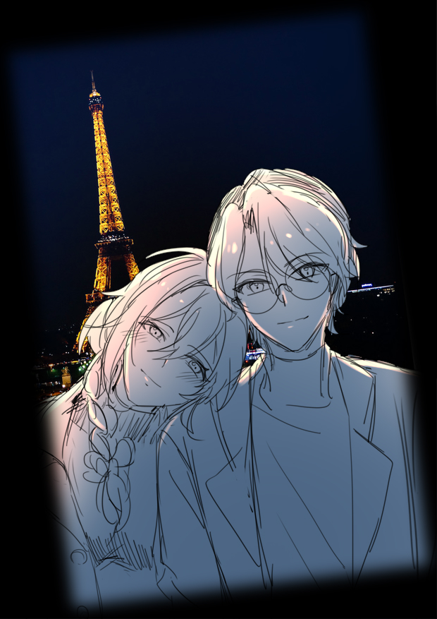 愛德蒙馬上點開了照片。相中的玻璃金字塔糊了大半,但兩人卻一點都沒察覺只是快樂地笑着,他們自然地靠得那麼近,彷彿像一對真正的情侶在合照。