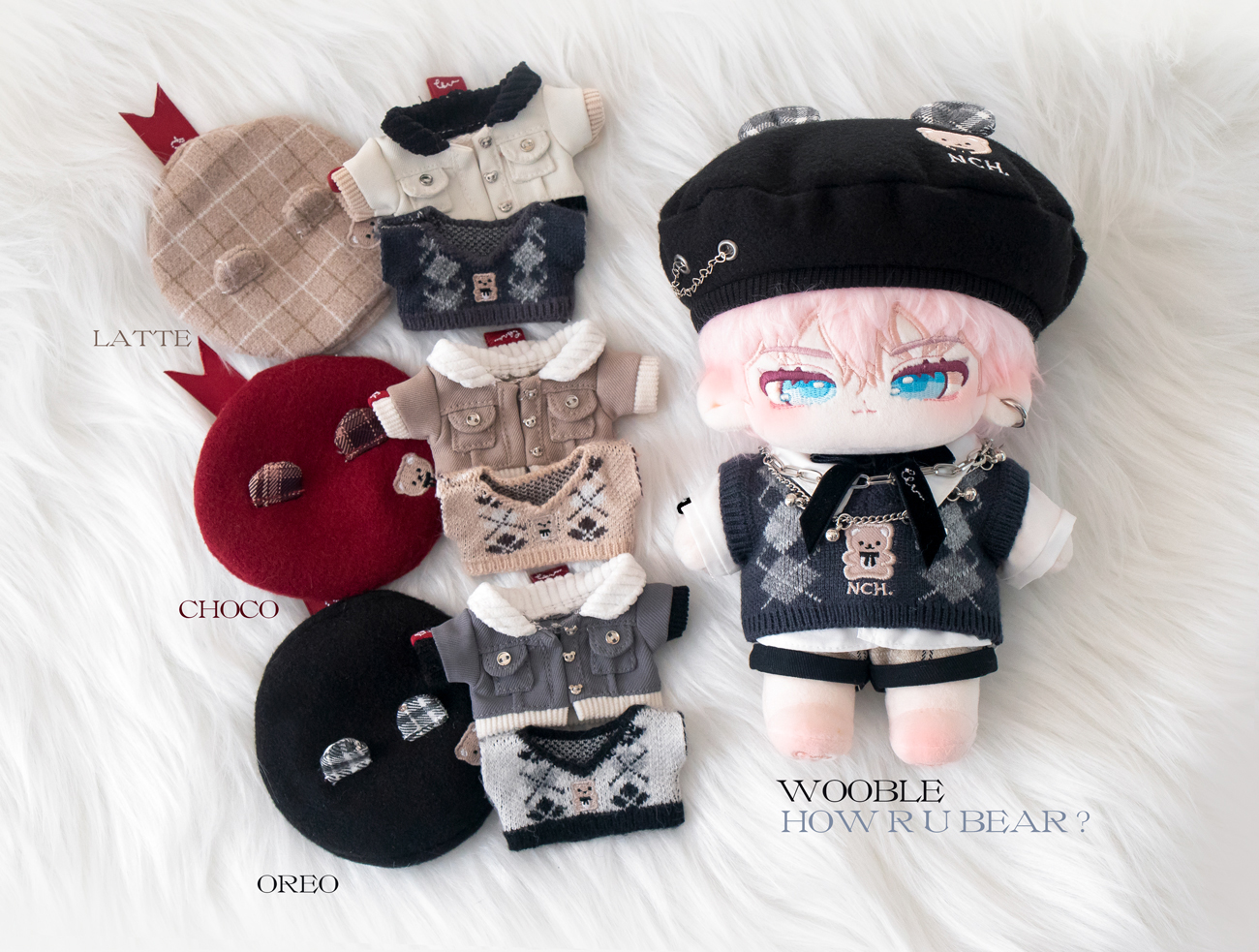 點數:貝雷帽、外套、背心、蝴蝶結、短袖襯衫、短褲、襪子(共7點)