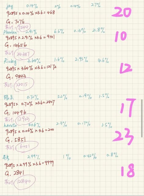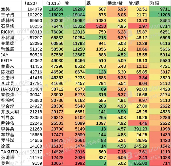 實時排名6位k太、7位Ricky