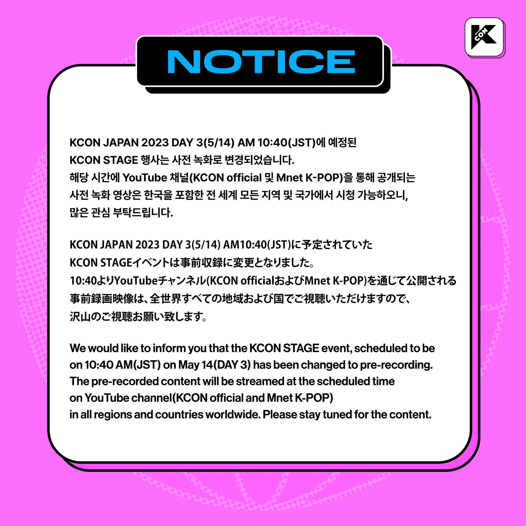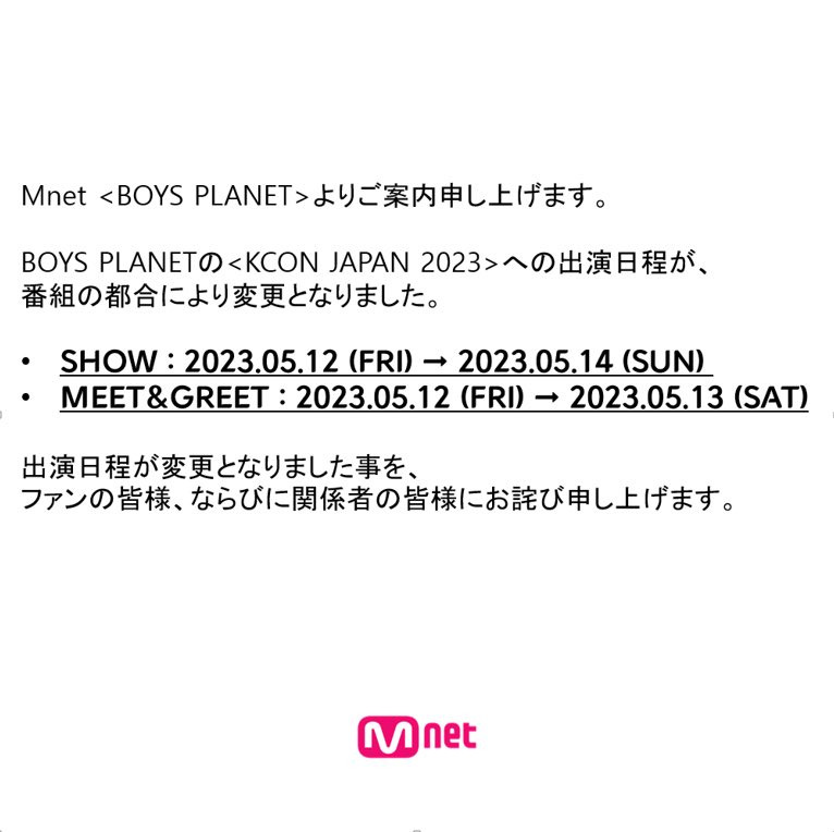 Kcon改成05.13 M&G, 05.14表演
