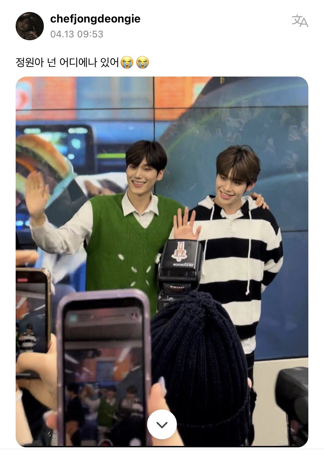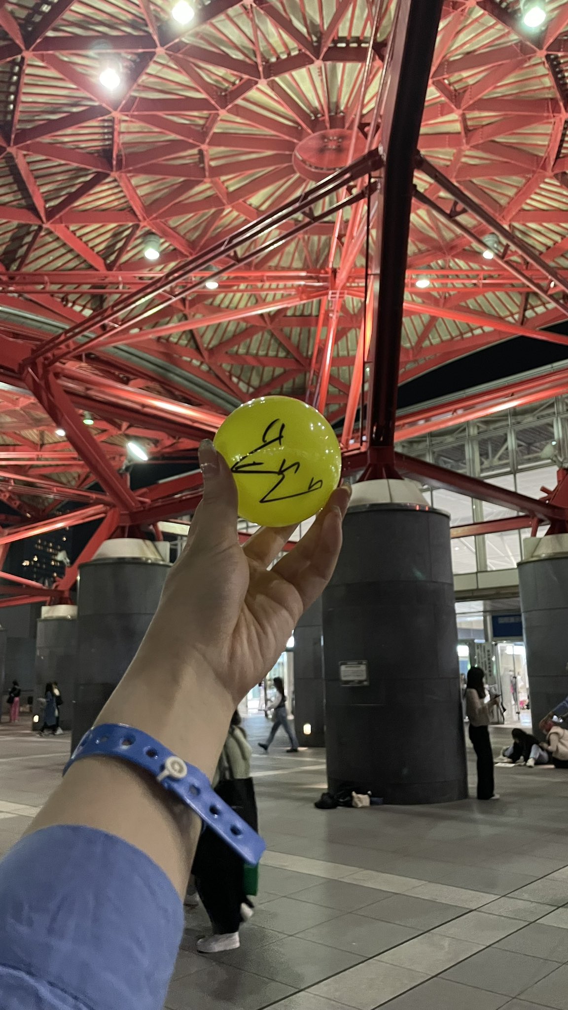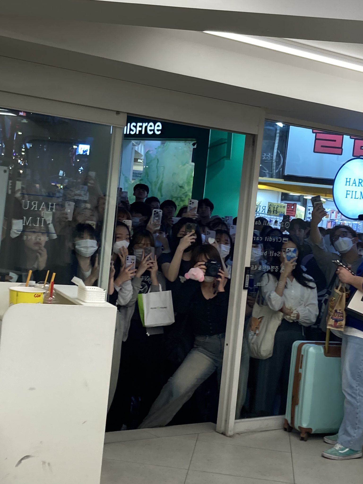 "去弘大一堆人圍著不知道是誰。一問男寶星球,但大家都不知道是誰"