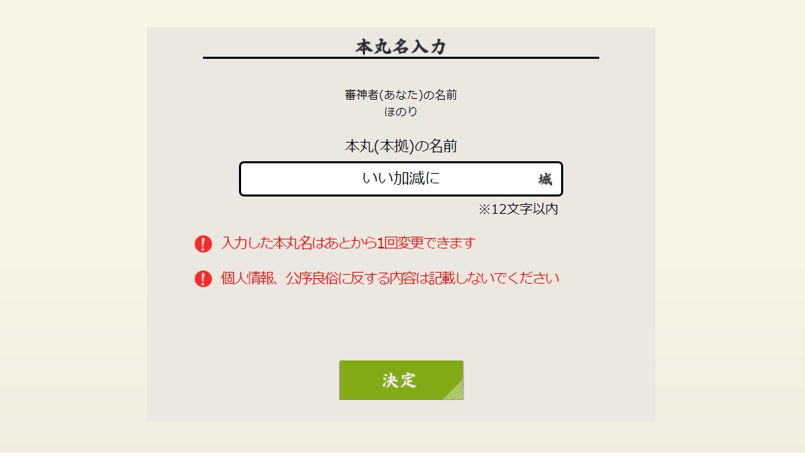 然後突然得知原來本丸是城...原來我是城主欸...至於本丸名城我還沒想好,所以現在是用近侍散步進本丸