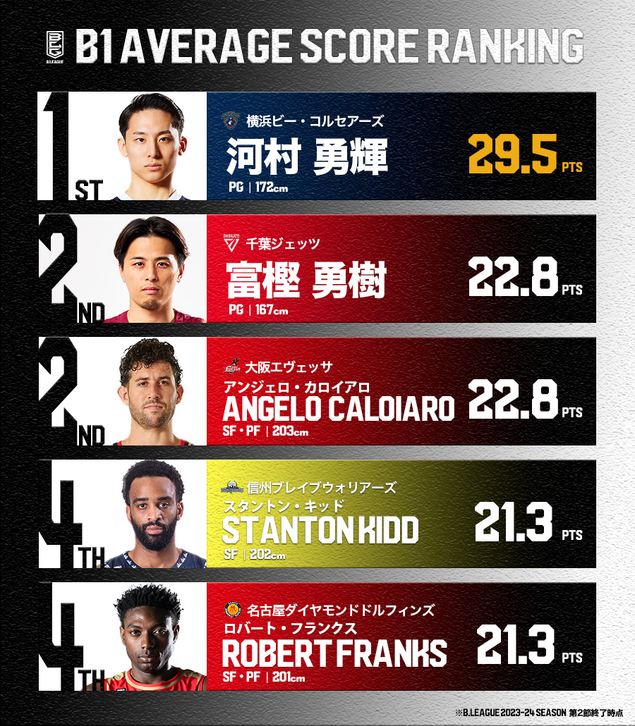 B.LEAGUE(Bリーグ) on XB1目前的平均得分前兩名都是PG,都沒超過175cm(冨樫選手還只有167cm