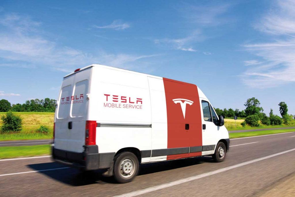 The van getting gas is a Ford.
