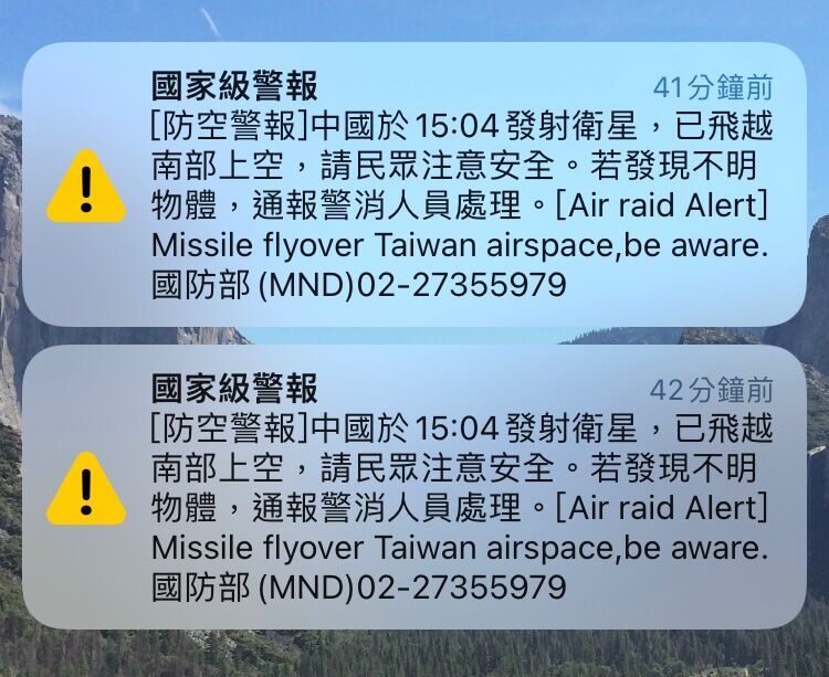區區發射一顆衛星要通知兩次