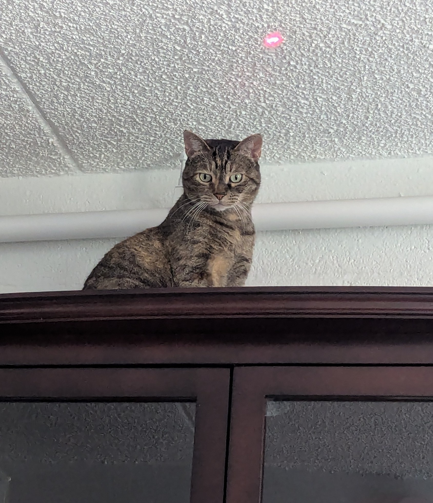 Nora finally gets up the nerve to go out on the patio months after I put garden netting to keep her from jumping through the gaps in the railing. Cats can't judge perspective beyond 20 ft. so they will jump even from eight-story windows.