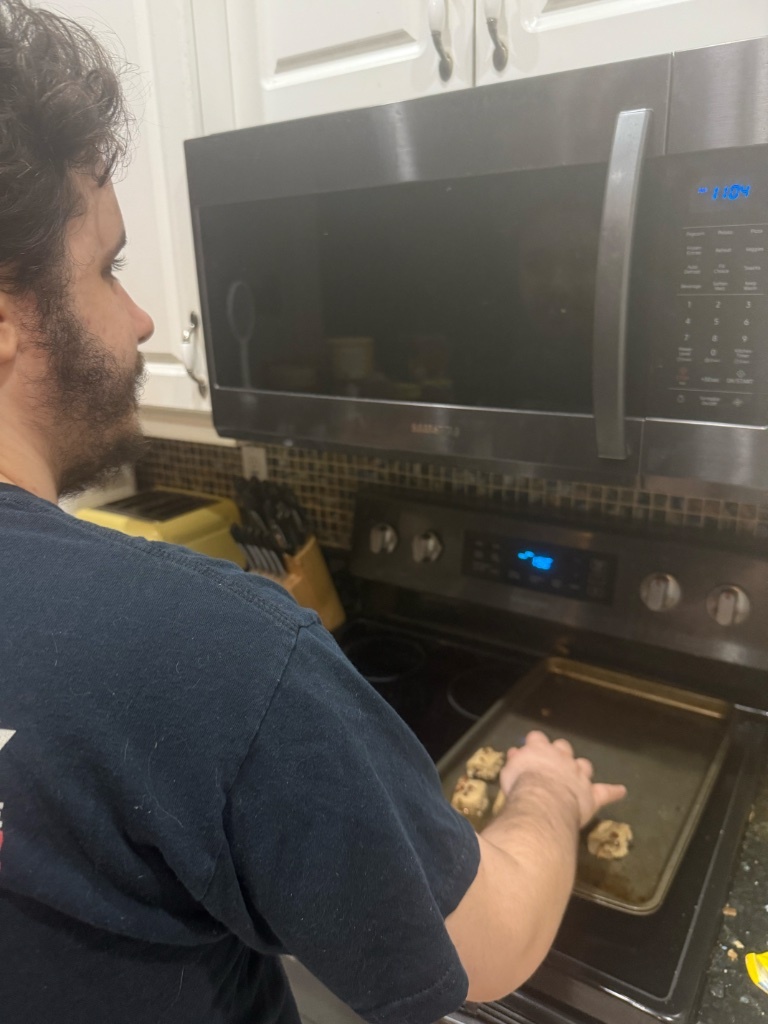 A while back I got some break and bake cookies on sale go have as a necessary little treat. Miles and I decided tonight is our necessary little treat night.